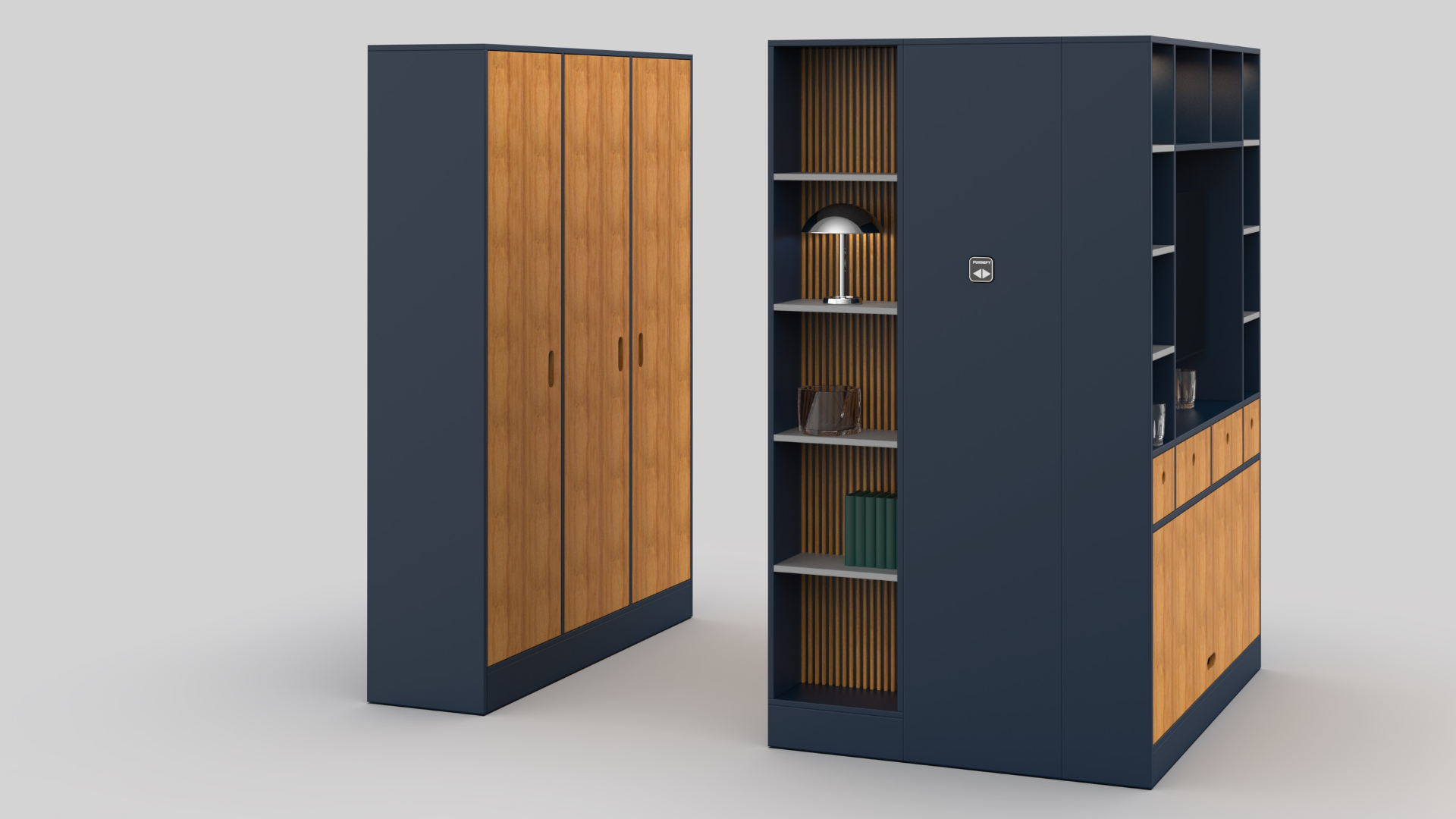 De Nurbed is een wandmeubel die kan geleverd worden als aparte kast of kan ingewerkt worden in een wand met extra kastruimte.
